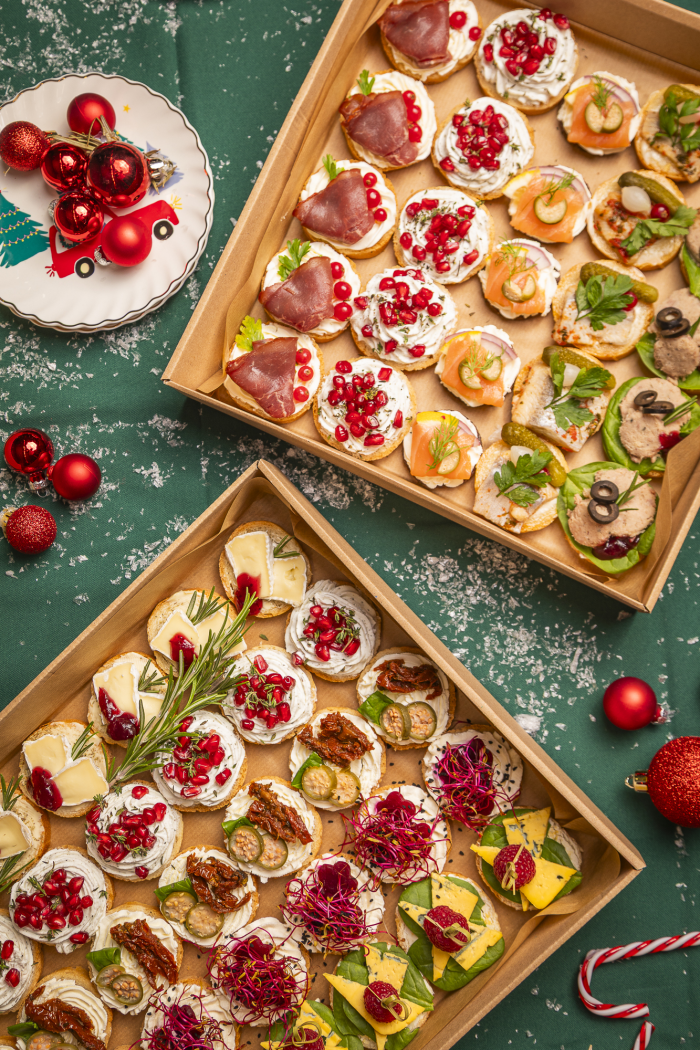 Bankietowe kanapki doskonale sprawdzą się podczas rodzinnych spotkań, firmowych wydarzeń, przyjęć i kameralnych imprez towarzyskich. Mini rozmiar każdej kanapeczki zapewnia wygodę i komfort podczas degustacji, czyniąc je praktycznym i eleganckim rozwiązaniem na każdą okazję. Rozsmakuj się w harmonii świątecznych smaków i spraw, by Twoje spotkanie było niezapomniane!